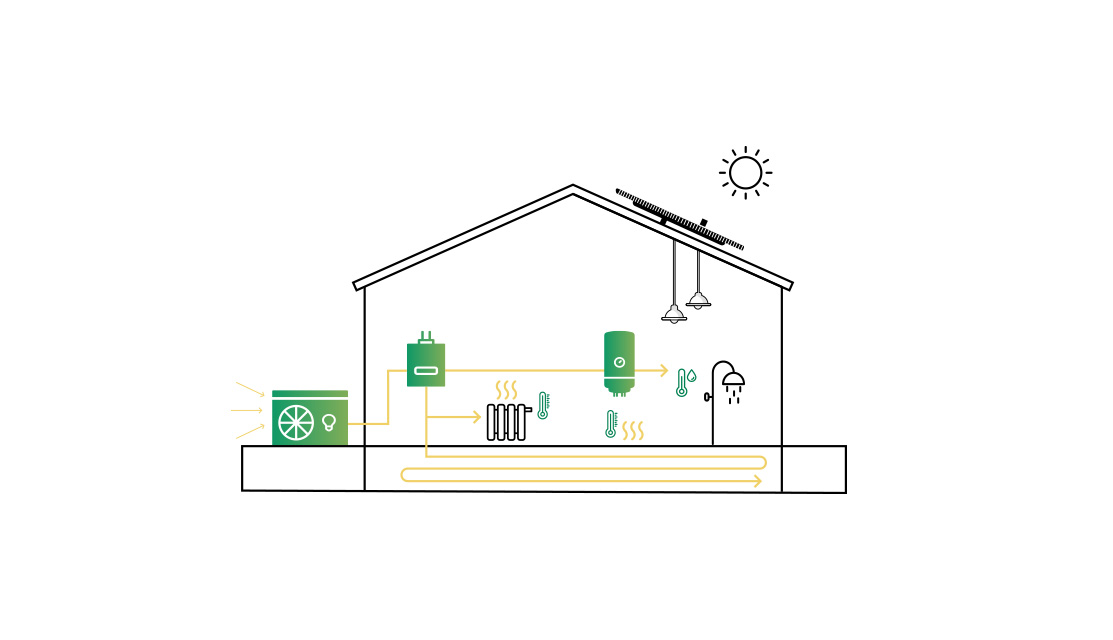 Scegli un sistema a pompa di calore per riscaldare casa e produrre acqua calda sanitaria. E con il sistema all-in-one ad aria puoi anche raffrescare gli ambienti.